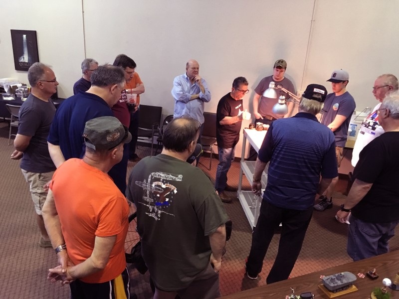 Following the contest, Jerry gave a demo on a salt technique for a simulated paint-chipping technique, great for simulating damage or weathering.